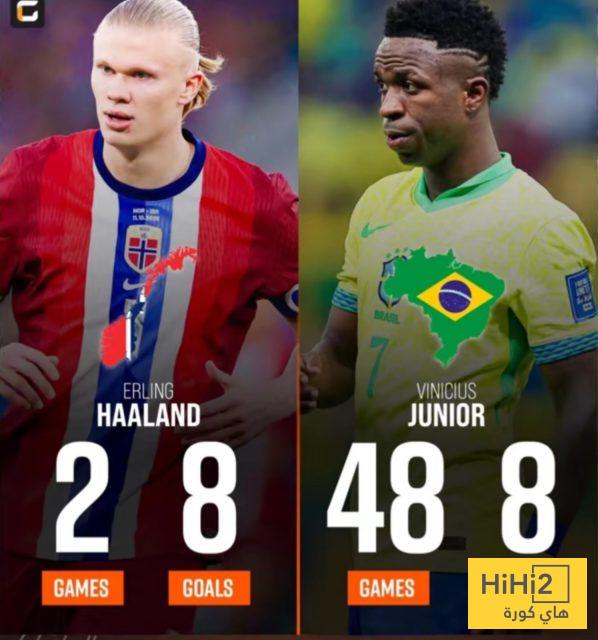هالاند يتألق مع ناديه مانشستر سيتي و مع منتخب النرويج بنفس الايقاع عكس فينيسيوس الذي صنع افراح ريال مدريد و تعاسة منتخب البرازيل.