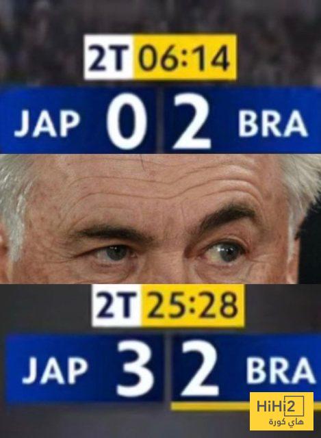 هاي كورة: قبل ساعات كان المنتخب البرازيلي متقدما بهدفين دون مقابل وفجأة وبقدرة قادر تبدلت النتيجة لخساره بثلاثيه من المنتخب الياباني البسيط هذا الانقلاب السريع وهذا التبدل في النتيجة هو ماركة مسجله للمفلس الايطالي كارلو انشيلوتي.