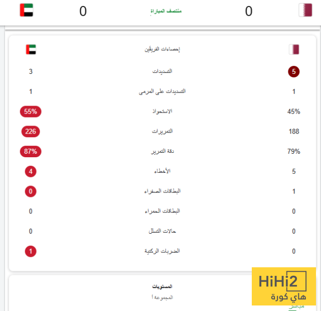 هاي كورة : سيطر الحذر على مجريات الشوط الأول بين قطر والإمارات، مع تبادل في الاستحواذ ومحاولات متقطعة على المرمى، دون أن ينجح أي من الفريقين في فرض أفضليته بشكل واضح.