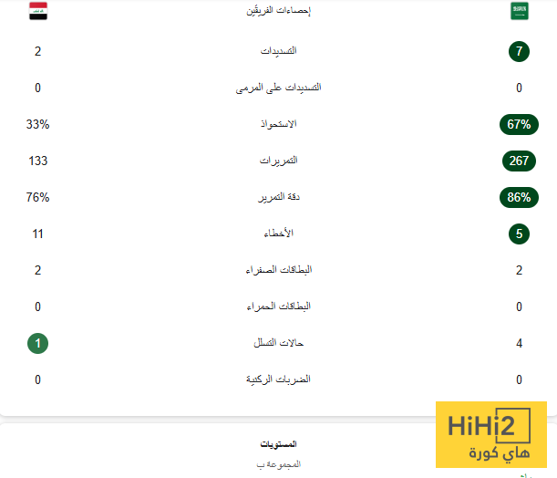 هاي كورة : عكست إحصائيات الشوط الأول بين السعودية والعراق تكافؤًا واضحًا في الأداء، حيث تقاربت نسب الاستحواذ وعدد المحاولات الهجومية من كلا الفريقين، ورغم بعض التحركات النشطة على الأطراف، إلا أن غياب الفاعلية في الثلث الأخير من الملعب حال دون تشكيل خطورة حقيقية على المرمى.