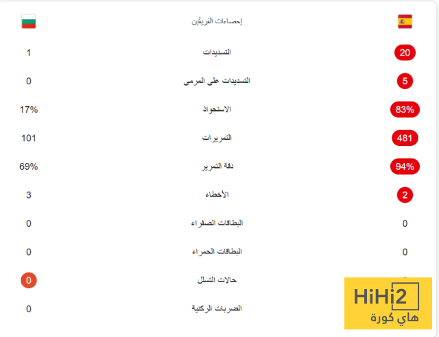 احصائيات الشوط الاول من مباراة اسبانيا و بلغاريا