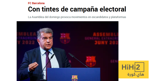 “سيعقد برشلونة يوم الاحد القادم الجمعية العامة للاعضاء وهي خطوة تمهيدية قبل الدعوة الرسمية للانتخابات الرئاسية ويثير هذا تحركات بين المرشحين السابقين تضفي طابعا انتخابيا وتنافسيا داخل النادي “.