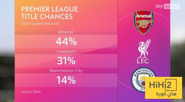 هاي كورة – توقع الذكاء الإصطناعي لشبكة أوبتا فوز نادي أرسنال بلقب الدوري الانجليزي الممتاز هذا الموسم ٢٠٢٥-٢٠٢٦ وسيحل ليفربول ثانيا في جدول الترتيب بينما مانشستر سيتي متوقع أن يقطن المركز الثالث في نهاية الموسم.