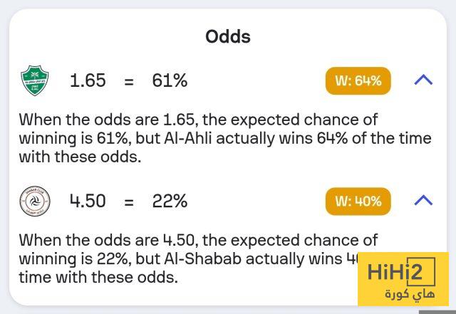 نسبة فوز الأهلي تصل إلى 61% ، بينما الشباب 22% أما التعادل لا يتجاوز الـ 17%.