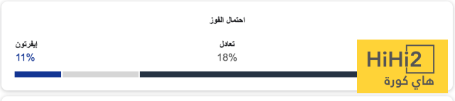 نسبة فوز مانشستر سيتي 71%، ونسبة فوز إيفرتون 11%، ونسبة التعادل 18%.