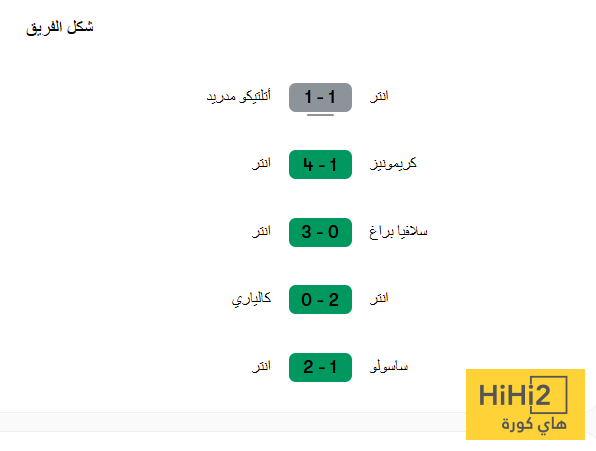 فيما يلي نتائج الإنتر خلال أخر 5 مباريات: