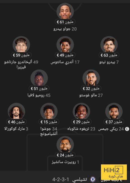 بلغت القيمة السوقية لـ تشكيلة تشيلسي أمام نوتنغهام فوريست 466 مليون يورو موزعة على اللاعبين كالتالي: