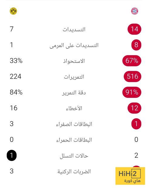 إحصائيات مباراة بايرن ميونخ وبوروسيا دورتموند