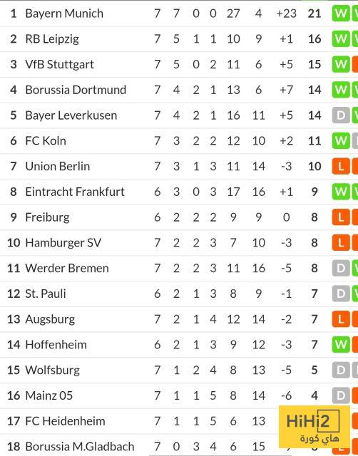 وجاء هذا الانتصار ليعزز صدارة بايرن ميونخ للجدول، حيث رفع رصيده من النقاط إلى 21 نقطة، بينما توقف رصيد بوروسيا دورتموند عند 14 نقطة في المركز الرابع.