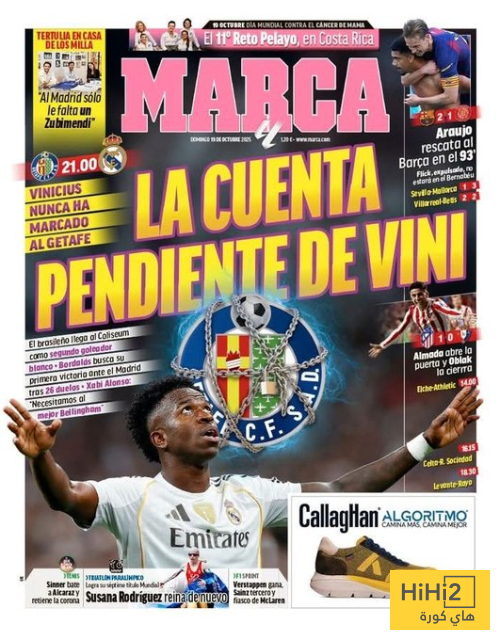 هاي كور- تصدر فينيسيوس جونيور، نجم ريال مدريد ، غلاف صحيفة ماركا الاسبانية اليوم الاحد 19 اكتوبر 2025.