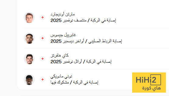 فيما يلي قائمة غيابات الجانرز عن مباراة أتلتيكو مدريد: