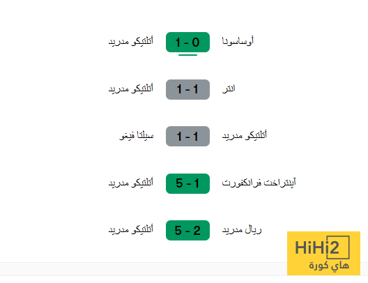 فيما يلي نتائج أتلتيكو في أخر 5 مباريات قبل ملاقاة أرسنال: