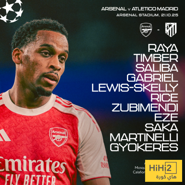 هاي كورة – أعلن ميكيل أرتيتا عن تشكيلته الرسمية لمباراة أتلتيكو مدريد التي ستقام بعد قليل على ملعب الإمارات.