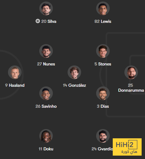 الرسم التكتيكي لتشكيلة مانشستر سيتي ضد فياريال: