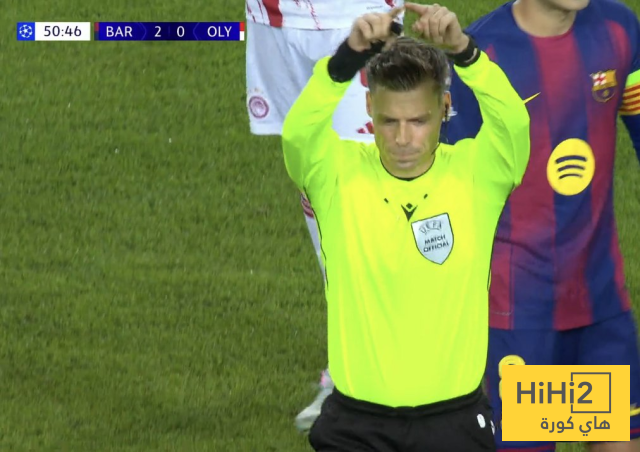 ضربة الجزاء لـ اولمبياكوس بسبب لمسة يد على اريك غارسيا ، لاعب البارسا.