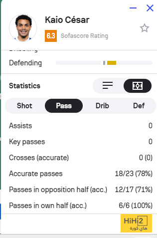 هاي كورة : حصل كايو سيزار، لاعب الهلال، على أعلى تقييم في فريقه أمام السد القطري خلال الشوط الأول، الذي انتهى بتقدم “الزعيم” بثنائية نظيفة، ضمن منافسات دوري أبطال آسيا، التي تشهد منافسة كبيرة بين الفريقين.