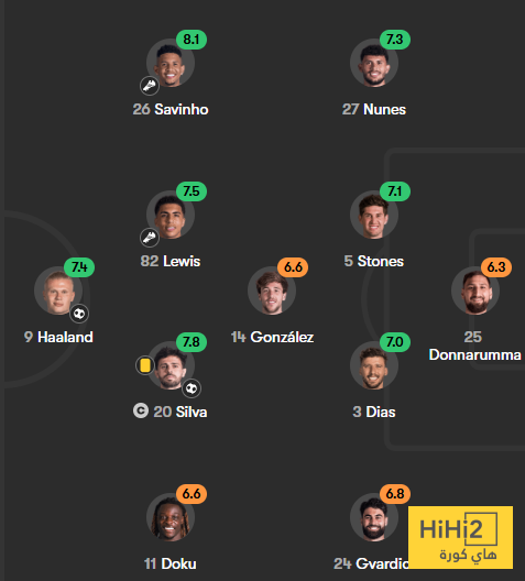 تقييم لاعبو مان سيتي ضد فياريال في الشوط الاول: