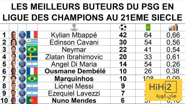 هاي كورة- نشر حساب بوب فوت قائمة افضل 10 هدافين لكل من نادي برشلونة و باريس سان جيرمان في مسابقة دوري ابطال اوروبا خلال القرن ال21.