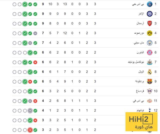 جدول ترتيب دوري ابطال اوروبا بعد انتهاء مباريات اليوم :