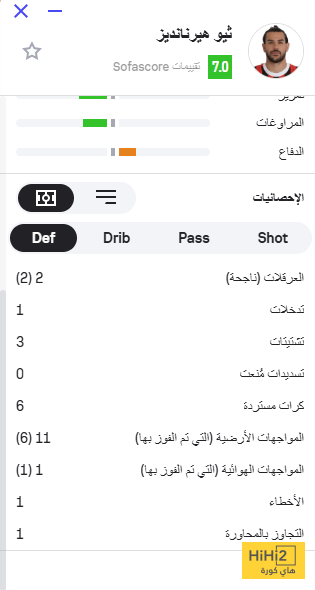 هاي كورة: قدم ثيو هيرنانديز، لاعب نادي الهلال، أداءً مميزًا وأرقامًا إيجابية خلال مواجهة السد القطري، وذلك حسب ما كشفت عنه الإحصائيات عقب اللقاء الذي أُقيم مساء أمس الثلاثاء ضمن منافسات دوري أبطال آسيا، وانتهى بفوز الزعيم بثلاثة أهداف مقابل هدف.