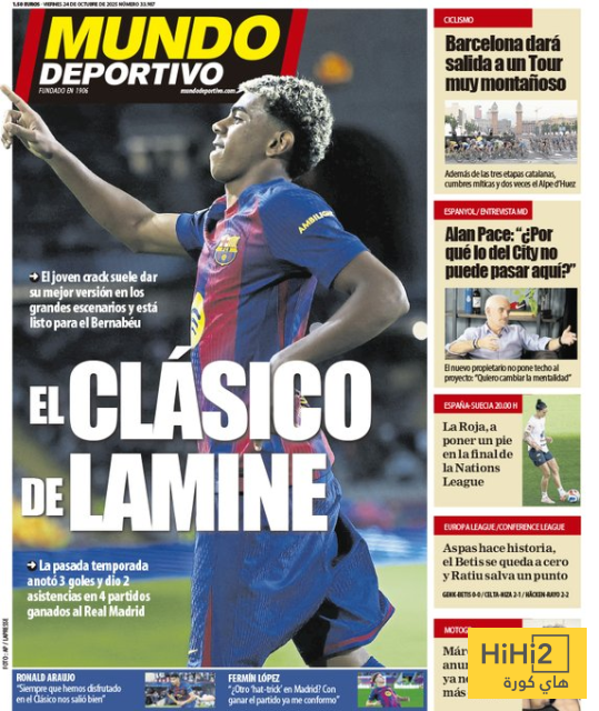 هاي كورة- عنونت صحيفة موندو ديبورتيفو الاسبانية على غلافها اليوم الجمعة 24 اكتوبر 2025 ..”الكلاسيكو مع لامين “.