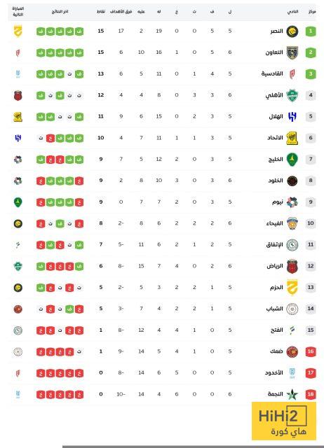 الاتحاد بـ 10 نقاط من أصل 15 ، يستقبل نظيره الهلال على ملعب «الإنماء» مسجلاً 11 هدفًا فيما استقبلت شباكه 7 أهداف .