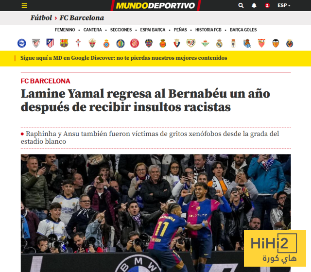 هاي كورة – ذكرت الموندو الكتالونية لامين يامال بواقعة العنصرية ضده في البرنابيو الموسم الماضي حينما أطلق بعض مشجعي ريال مدريد عليه لقب ” الأسود ” ورددوا عبارات مثل ” اللعنة والموت ” .
