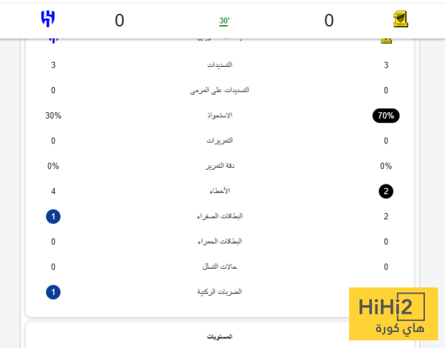 هاي كورة : كشفت احصائيات أول 30 دقيقة في الشوط الأول بين الهلال والاتحاد، بتفوق كاسح للأخير أمام الزعيم، ولكن دون تسجيل أي هدف حتى الآن.