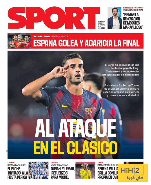 هاي كورة- تصدر فيران توريس ، لاعب برشلونة، غلاف صحيفة سبورت الكتالونية اليوم السبت 25 اكتوبر 2025.