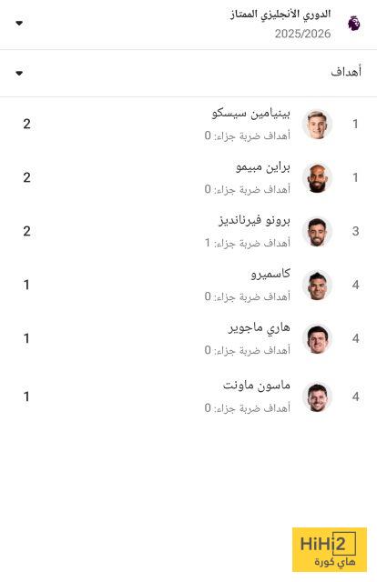 ويتصدر بنيامين سيسكو قائمة هدافي مانشستر يونايتد في الدوري هذا الموسم، حيث سجل هدفين ، متساويًا مع مبويمو وبرونو فرنانديز .