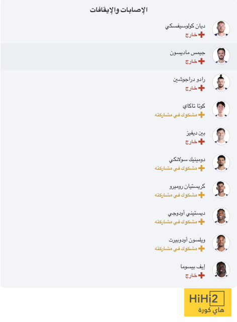 وسيكون على توماس فرانك أن يدخل المواجهة ولديه غيابات كثيرة في قائمته للمباراة ، لذلك سيكون عليه أن يتعامل معها بإيجاد البدلاء المناسبين من أجل عدم التأثير السلبي على أداء الفريق .