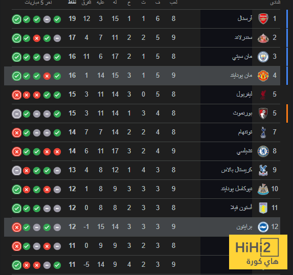 بهذ الفوز ارتفع رصيد مانشستر يونايتد الى 16 نقطة في المركز الرابع من ترتيب الدوري الانجيزي الممتاز ، بينما تجمد رصيد برايتون عند النقطة 12 في المركز الثاني عشر من الترتيب .