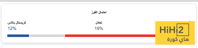 نسبة فوز أرسنال 69% ، ونسبة فوز كريستال بالاس 12% ، ونسبة التعادل 19%.