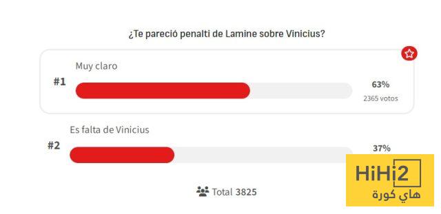 وبحسب استفتاء أجرته صحيفة آس الإسبانية ، رأي 63% من المشاركين (2365 صوتًا) أن التدخل الذي قام به لامين يامال على فينيسيوس جونيو كان ركلة جزاء واضحة للغاية .