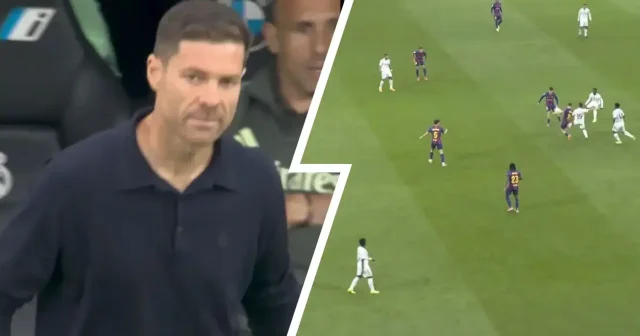 وبينما اتخذ الحكم قرار إلغاء الهدف، ظهر رد فعل محبط على وجه تشابي ألونسو بعد أن رأى الحكم يلغي الهدف.