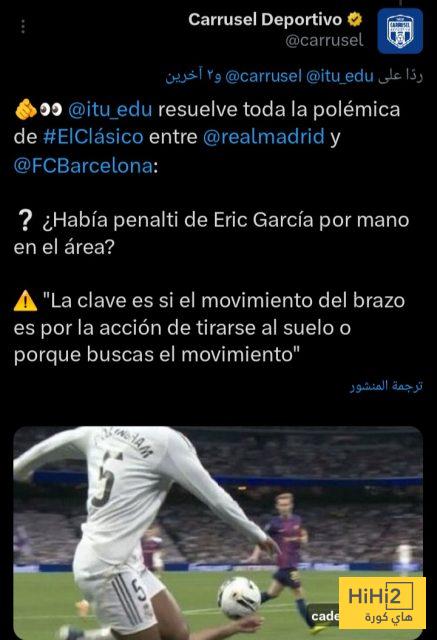 “هل كانت هناك ركلة جزاء على إريك غارسيا بسبب لمسة يد داخل المنطقة؟ المفتاح هو ما إذا كانت حركة الذراع ترجع إلى فعل رمي نفسك على الأرض أو لأنك تبحث عن الحركة”.