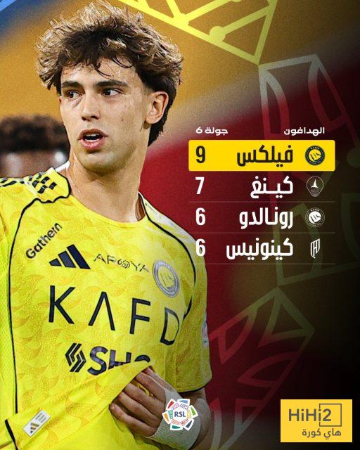 فيليكس ، الذي انضم للعالمي خلال الميركاتو الصيفي الماضي ، يعتلي حاليًا قائمة هدافي الدوري السعودي للمحترفين بعد مرور 6 جولات ، وسط توقعات كثيرة بحسمه للقب في ختام الموسم .
