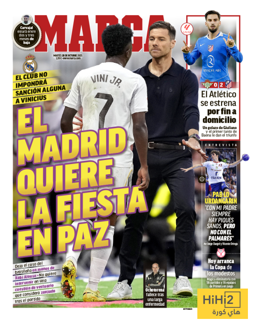 هاي كورة- فينيسيوس جونيور ومدربه تشابي الونسو تصدرا غلاف صحيفة ماركا الاسبانية اليوم الثلاثاء 28 اكتوبر 2025 .