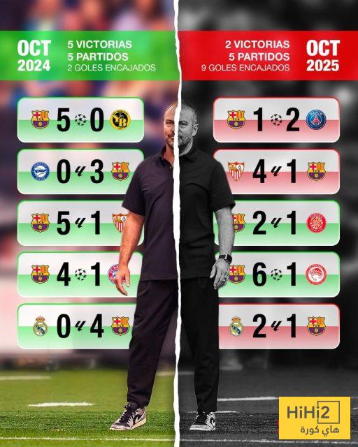 برشلونة في الموسم الماضي كان قد حقق الانتصار في جميع مباريات شهر اكتوبر ، منها الكلاسيكو و دوري ابطال اوروبا عكس العام الحالي .