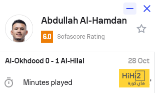 هاي كورة : ظهر عبد الله الحمدان لاعب الهلال ضد الأخدود ضمن منافسات دور الـ16 من بطولة كأس خادم الحرمين الشريفين ، بأداء غير مرضي وأثار غضب الجميع كما حصل على تقييم منخفض ، على ملعب مدينة الأمير هذلول بن عبد العزيز .