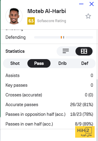هاي كورة : متعب الحربي لاعب الهلال يقدم أداءً ضعيفًا في الشوط الأول، مع فقدان السيطرة على الكرة وتأثير محدود على هجمات الفريق، ضد الأخدود ،في بطولة كأس خادم الحرمين الشريفين ، على ملعب مدينة الأمير هذلول بن عبد العزيز .