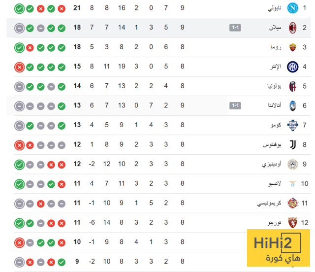 ترتيب الدوري الايطالي بعد تعادل ميلان امام اتالانتا
