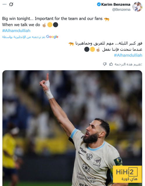 بنزيما علق على الفوز قائلًا: “عندما نتحدث فإننا نفعل ، فوز كبير الليلة… مهم للفريق وجماهيرنا”.