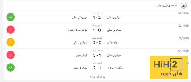 فيما يلي نتائج سوانزي في أخر 5 مباريات قبل مواجهة السيتي:
