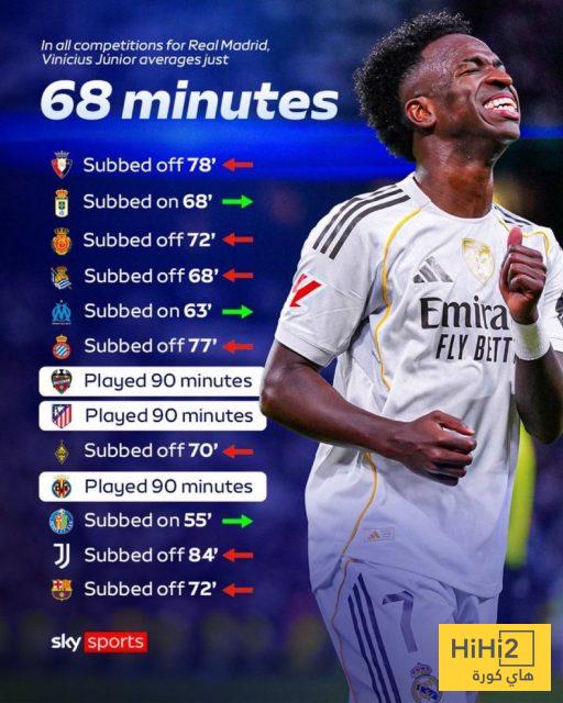 هاي كورة- لم يلعب النجم البرازيلي فينيسيوس جونيور مع ريال مدريد هذا الموسم مباريات كاملة إلا في ثلاثة فقط، حيث تم استبداله من جميع المباريات الأخرى التي شارك فيها.