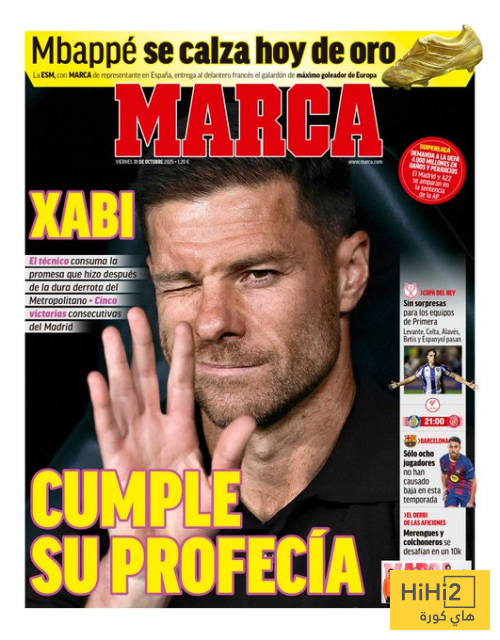 هاي كورة- تصدر تشابي ألونسو ، مدرب ريال مدريد ، غلاف صحيفة ماركا الاسبانية اليوم الجمعة 31 اكتوبر 2025 .