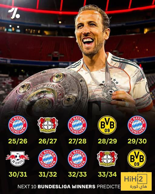 هاي كورة- كشف برنامج الذكاء الاصطناعي عن ابطال الدوري الالماني خلال المواسم العشرة القادمة بما فيها الموسم الحالي 2025-2026 و حتى الموسم 2034-2035.