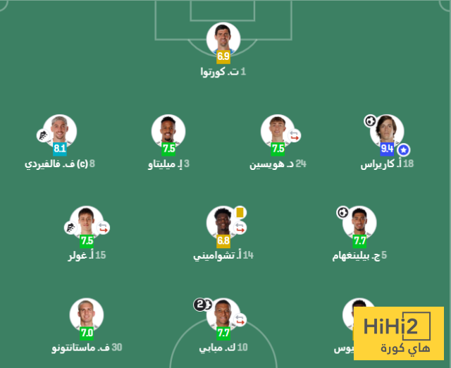 سجل اهداف ريال مدريد مبابي هدفين و بيلينغهام و كاريراس في الدقائق 82،44،31،19 .