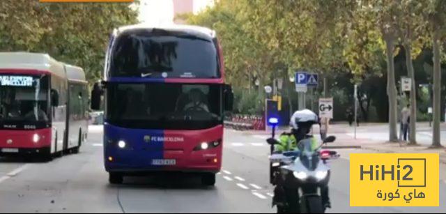 حافلة برشلونة وصلت منذ قليل إلى ملعب مونتجويك قبل مواجهة التشي في الدوري الاسباني .