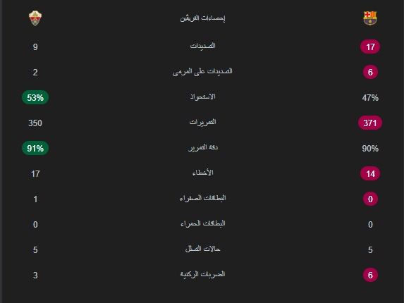 احصائيات المباراة :